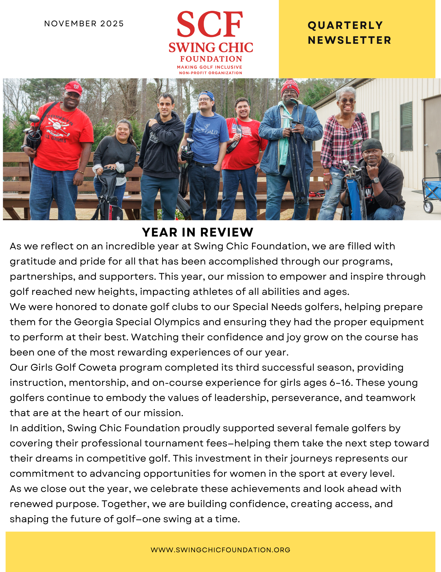 The mission of the Swing Chic Foundation is to empower girls and individuals with diverse abilities through the game of golf by providing access to instruction, equipment, mentorship, and competitive opportunities.